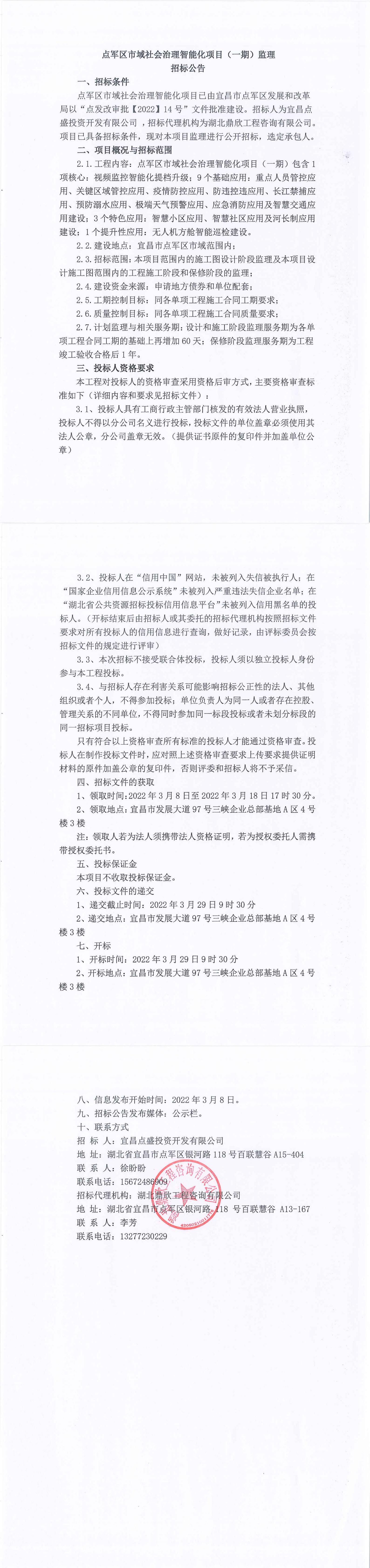 點軍區(qū)市域社會治理智能化項目(一期)監(jiān)理招標(biāo)公告