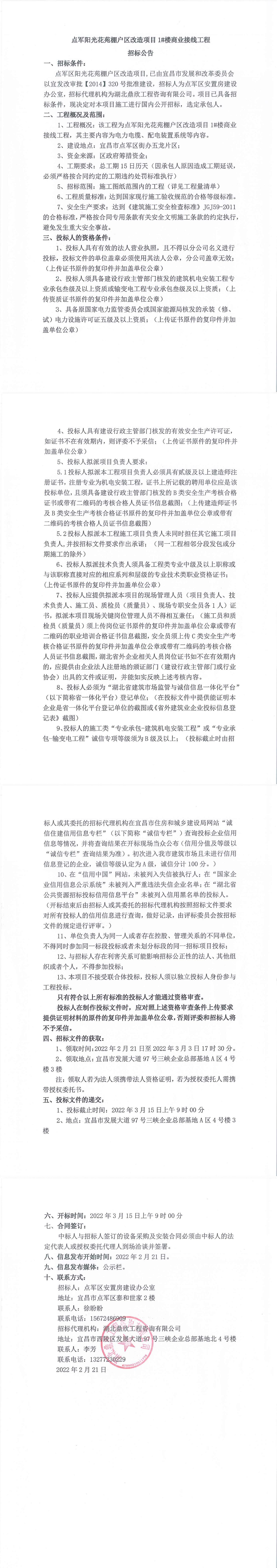 點軍陽光花苑棚戶區(qū)改造項目1#樓商業(yè)接線工程招標(biāo)公告