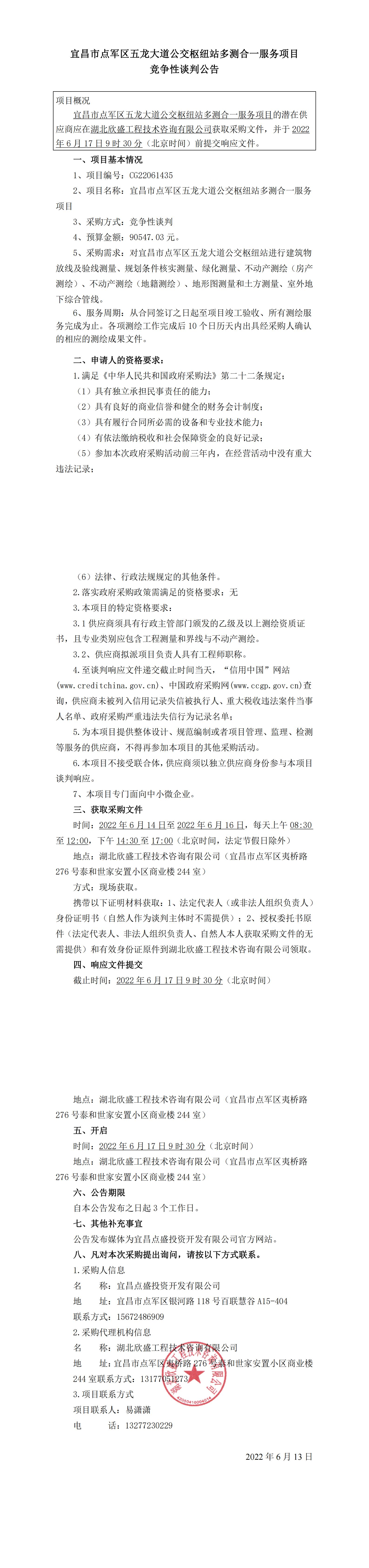 宜昌市點軍區(qū)五龍大道公交樞紐站多測合一服務(wù)項目競爭性談判公告