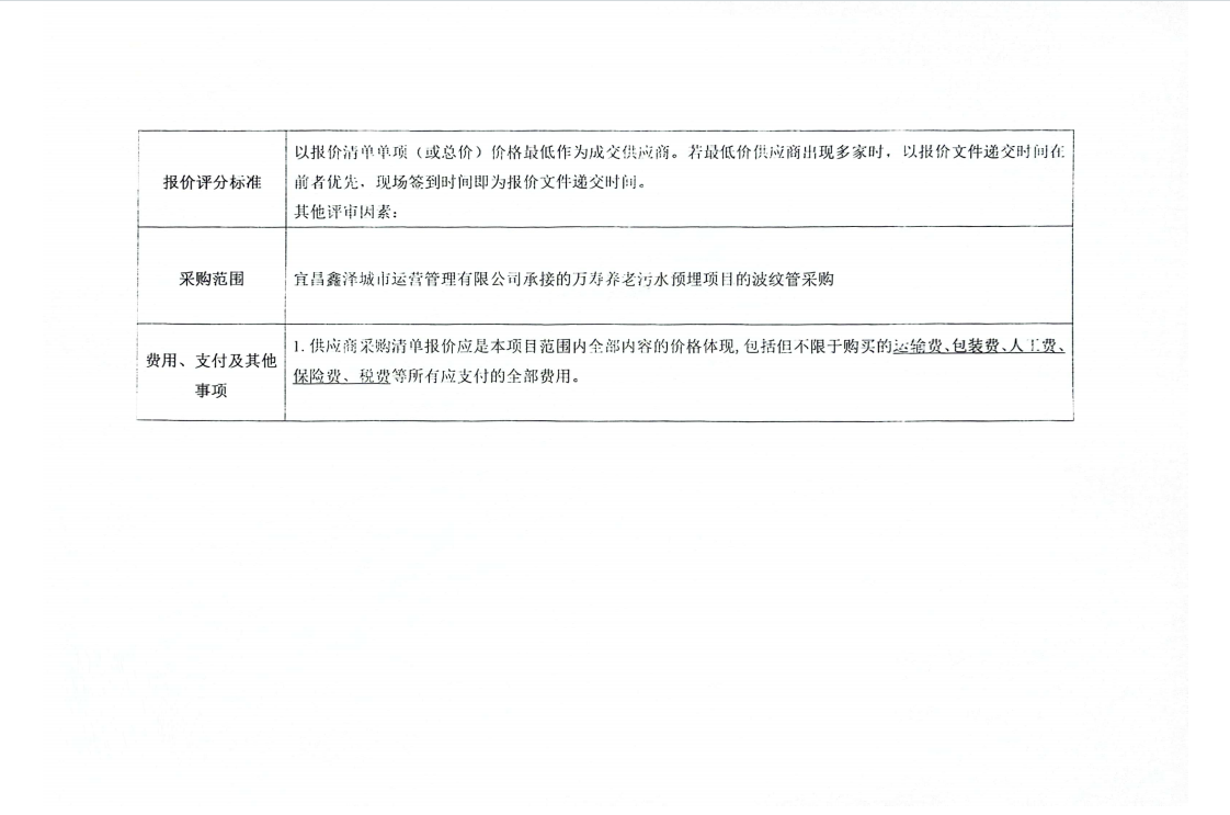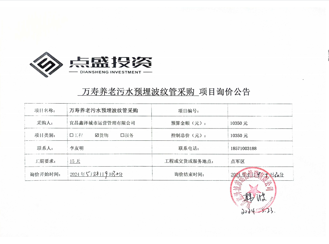 萬(wàn)壽養(yǎng)老污水預(yù)埋波紋管采購(gòu)詢價(jià)公告