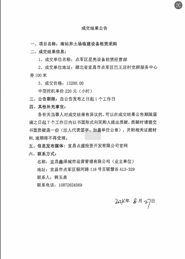 南站路棄土場臨建設(shè)備租賃采購項(xiàng)目成交公告