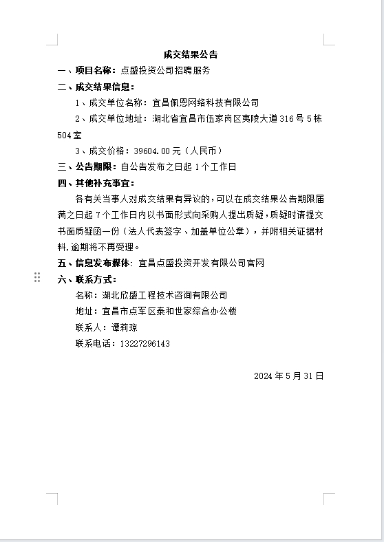 發(fā)布時間:2024/5/31 來源:宜昌點盛投資開發(fā)有限公司 訪問:3097