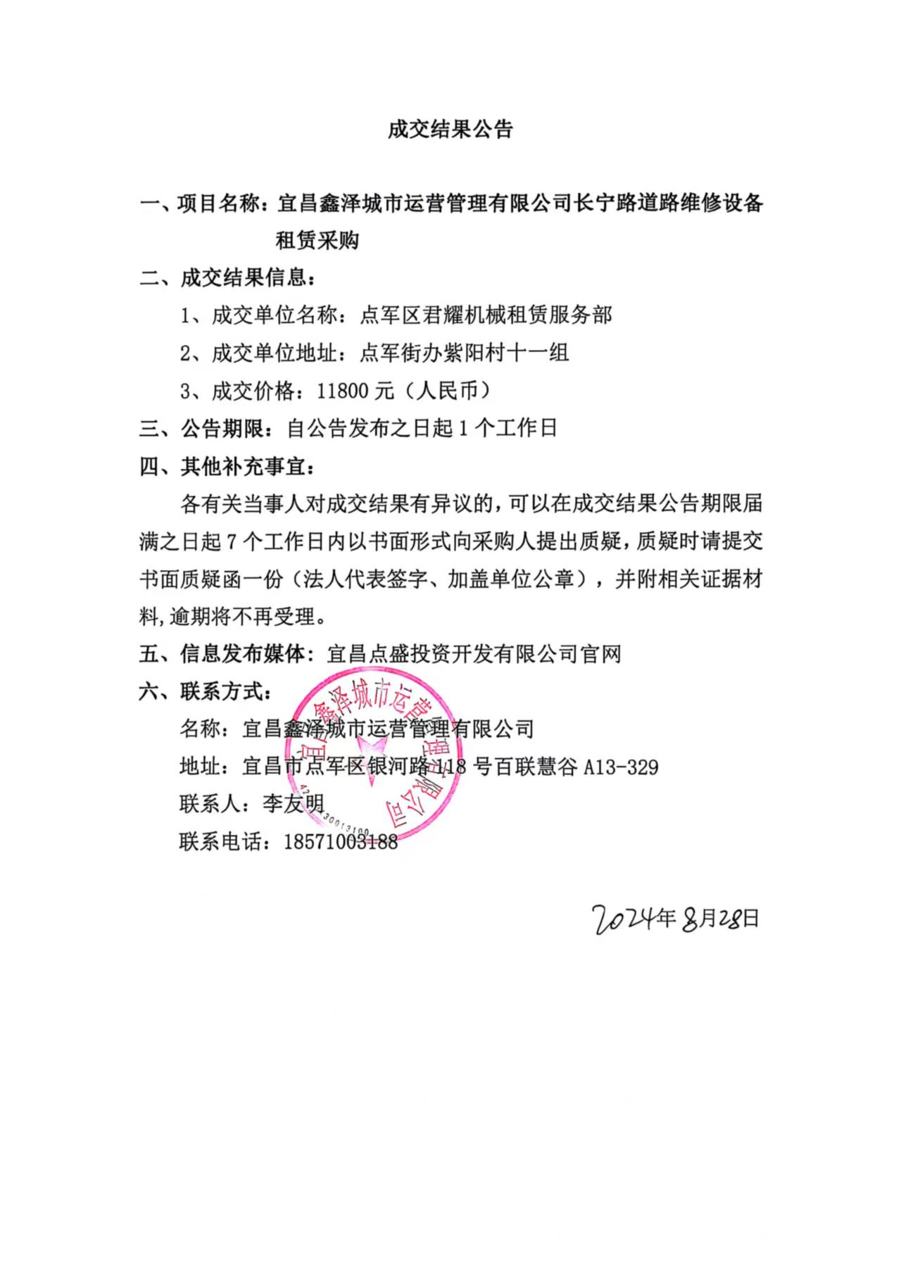 長(zhǎng)寧路道路維修設(shè)備租賃采購成交公告